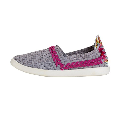 E-last Simple Funk Grey Slip On The E-Last Weave is set on a contrasting SpringLight sole unit featuring our patented low density EVA technology. The upper is a woven textile E-lastic giving a form fitting sock for laceless luxury hugging your feet to the over comfortable Hey Dude foot bed, complete with canvas lined memory insoles that are soft and breathable. The compact weave combined with the SpringLight sole provides a more conservative look creating a smartened appearance. As ever the canvas lined removable insole allows for the shoes to be worn barefoot without attracting bacteria that leads to odour. A great summer slipper for everyday use or packing for your summer holidays. Material: E-last Textile Sole Unit: SpringLight Weight: 140grms Features: E-Last web contour moulding upper Regular fit Machine cold washable Anatomical canvas footbed Suede heel pulls