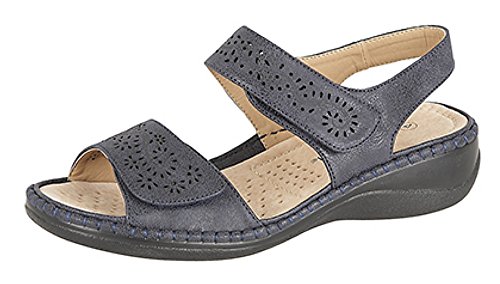Best Seller! Ladies L589 Navy Touch Fastening Halter Back Faux Nubuck Sandals size 5 UK Review