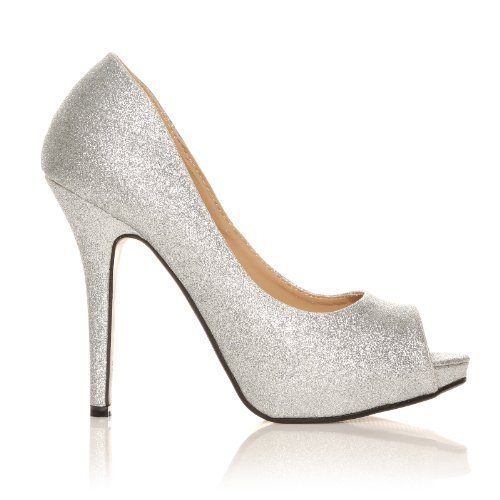 ShuWish UK offer TIA Silver Glitter Stiletto High Heel Platform Peep Toe Shoes Size UK 5 EU 38. This awesome product currently limited units, you can buy it now for £24.99, You save -